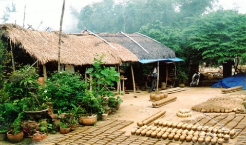 Continue cycling pass shrimp and fish farming village, bamboo trees to Thanh Ha Pottery village to meet local skillful artists, who will show us how to make pottery objects (snake, teapots, vese, lamp…) by hand then we can make yourself and write down your name…on these ones for souvenir.