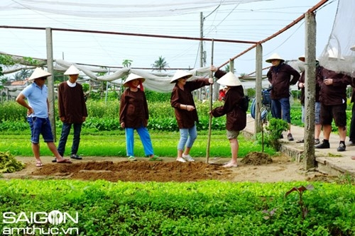 At the village, we walk around to enjoy the charming green of vegetables and do the gardening with local famers : making land, fertilizing, sowing sheet, watering vegetables…